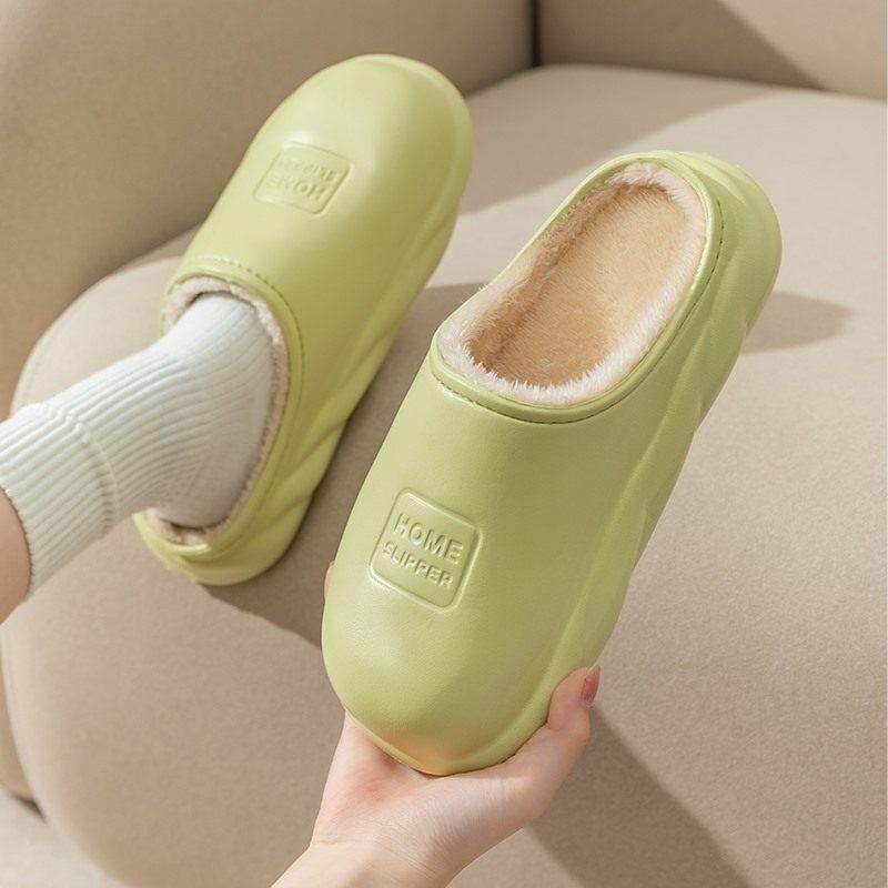 日本进口MUJIE棉拖鞋女冬季外穿包跟室内家居厚底防水加绒易清洗