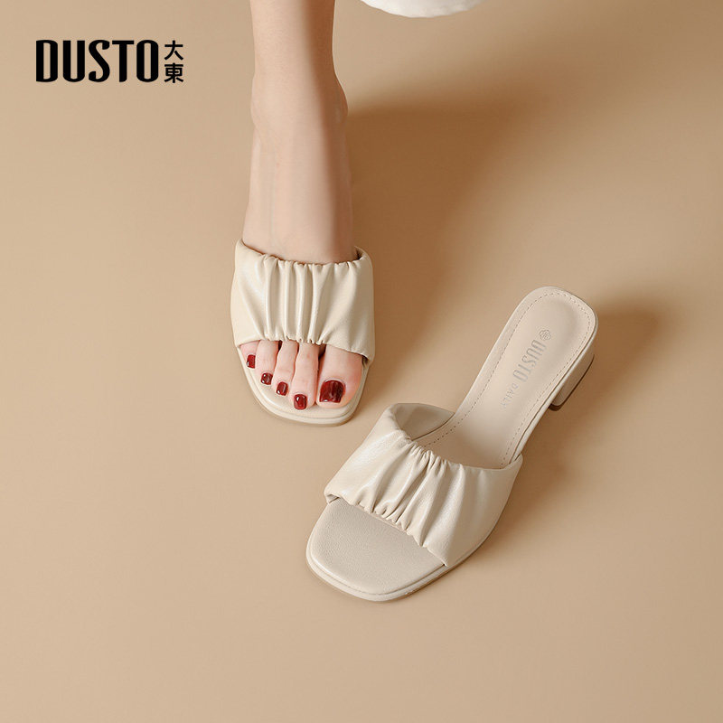大东拖鞋女鞋2026夏季新款时尚褶皱凉拖鞋一字拖百搭外出粗跟女拖