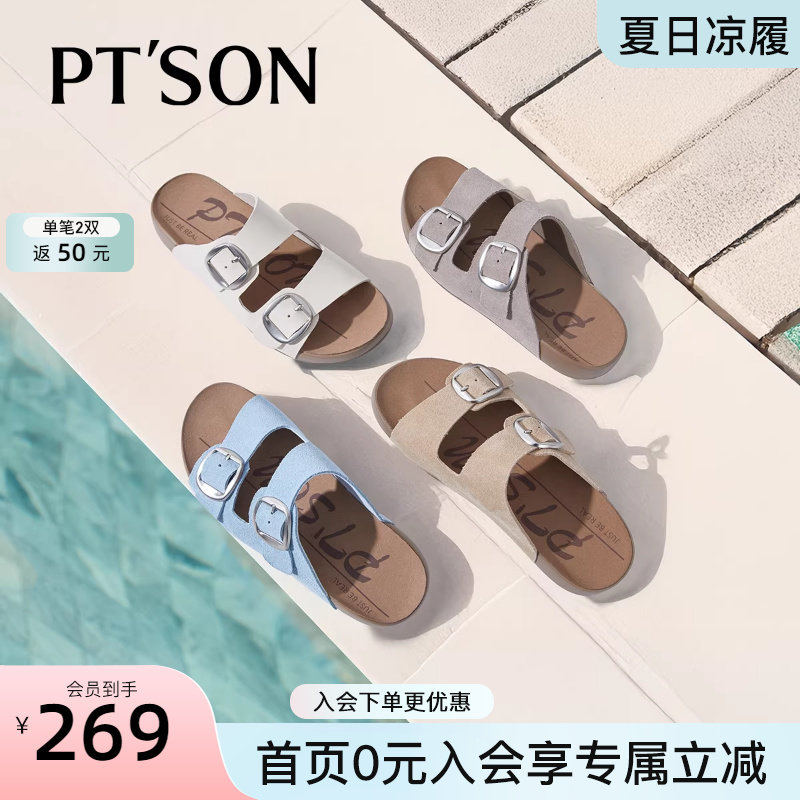 博主推荐百田森多巴胺勃肯拖鞋女新款外穿夏皮软底拖鞋子