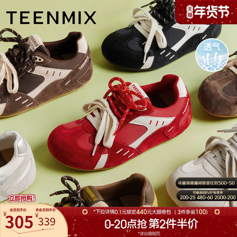 天美意芒果鞋黄色复古厚底阿甘德训鞋女新款休闲运动鞋包头半拖鞋