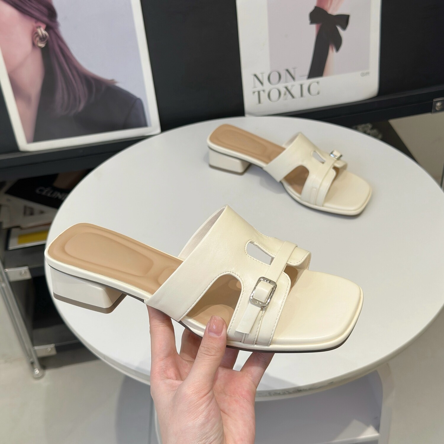 色非复古方头防滑厚底一字拖鞋女2025夏季新款时尚舒适真皮凉拖鞋