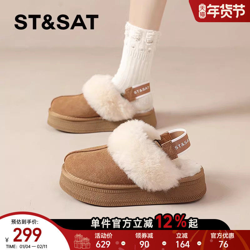 星期六雪地靴棉鞋女2025冬季新款厚底勃肯鞋加绒保暖外穿毛毛拖鞋