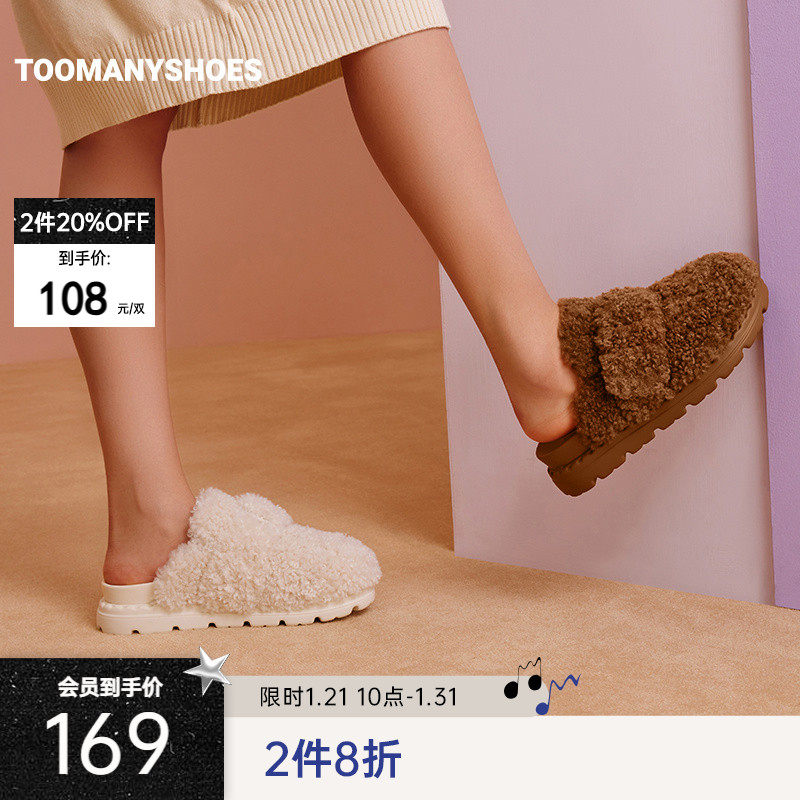 【2件8折】Toomanyshoes女鞋泰迪熊毛毛鞋包头毛绒绒拖鞋女