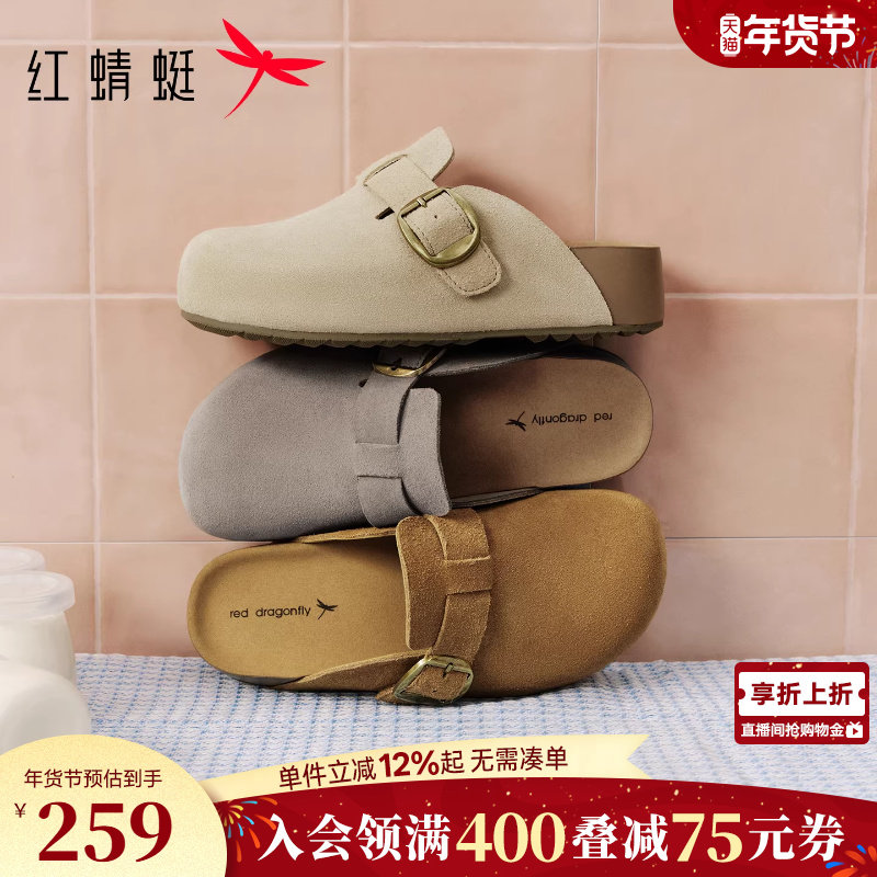 红蜻蜓厚底勃肯鞋女半拖2026春季新款女鞋软底一脚蹬外穿休闲拖鞋