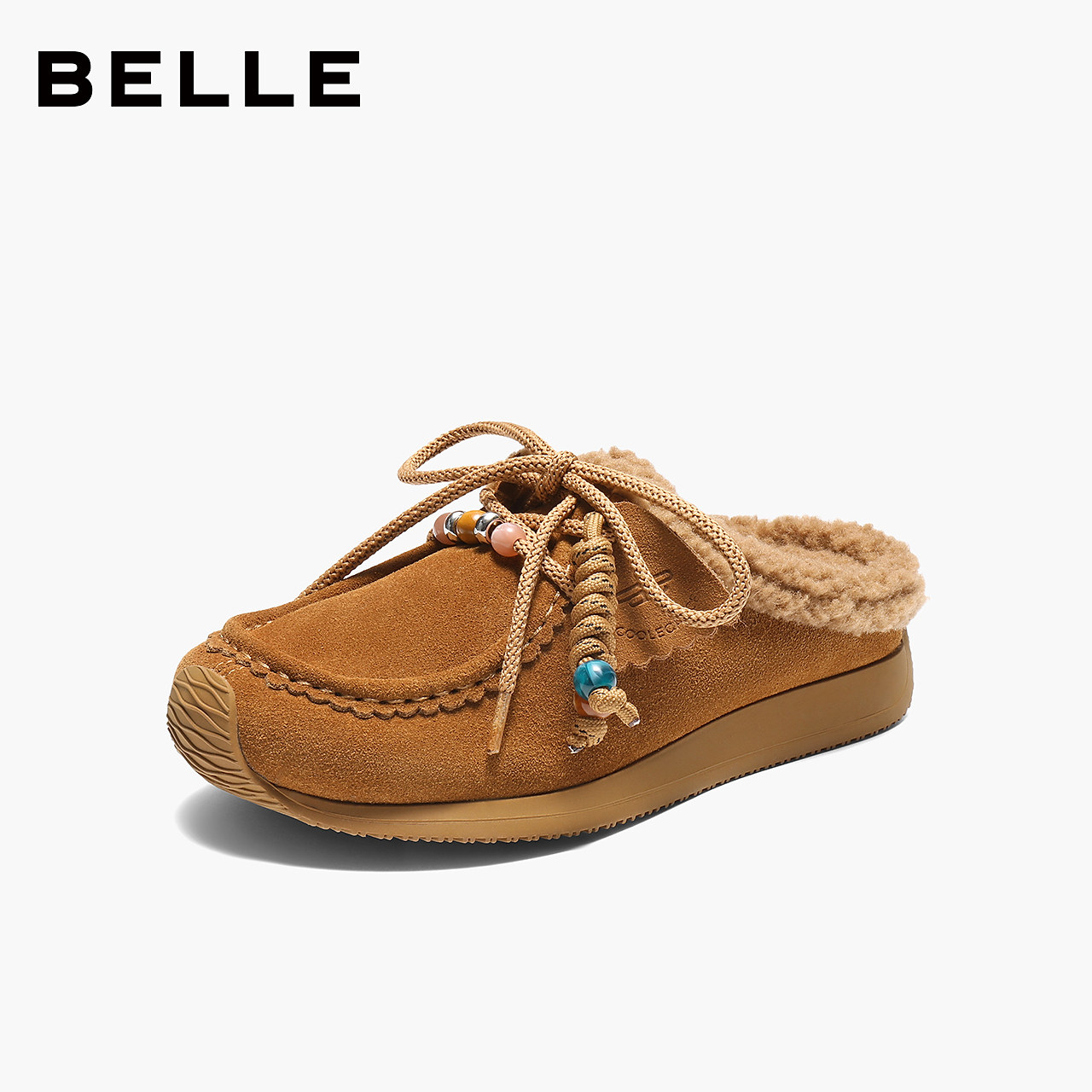 百丽复古串珠挂饰勃肯鞋女冬季新款内增高保暖包头拖鞋B2890DH5