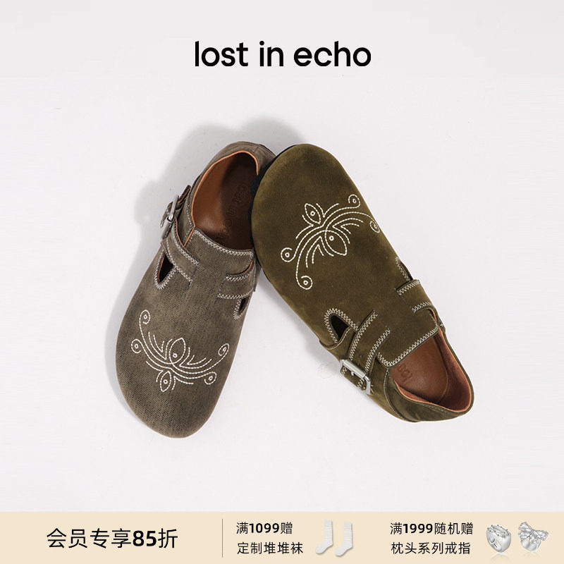 赵昭仪同款lost in echo2025冬季新款刺绣包头牛仔勃肯拖鞋一脚蹬