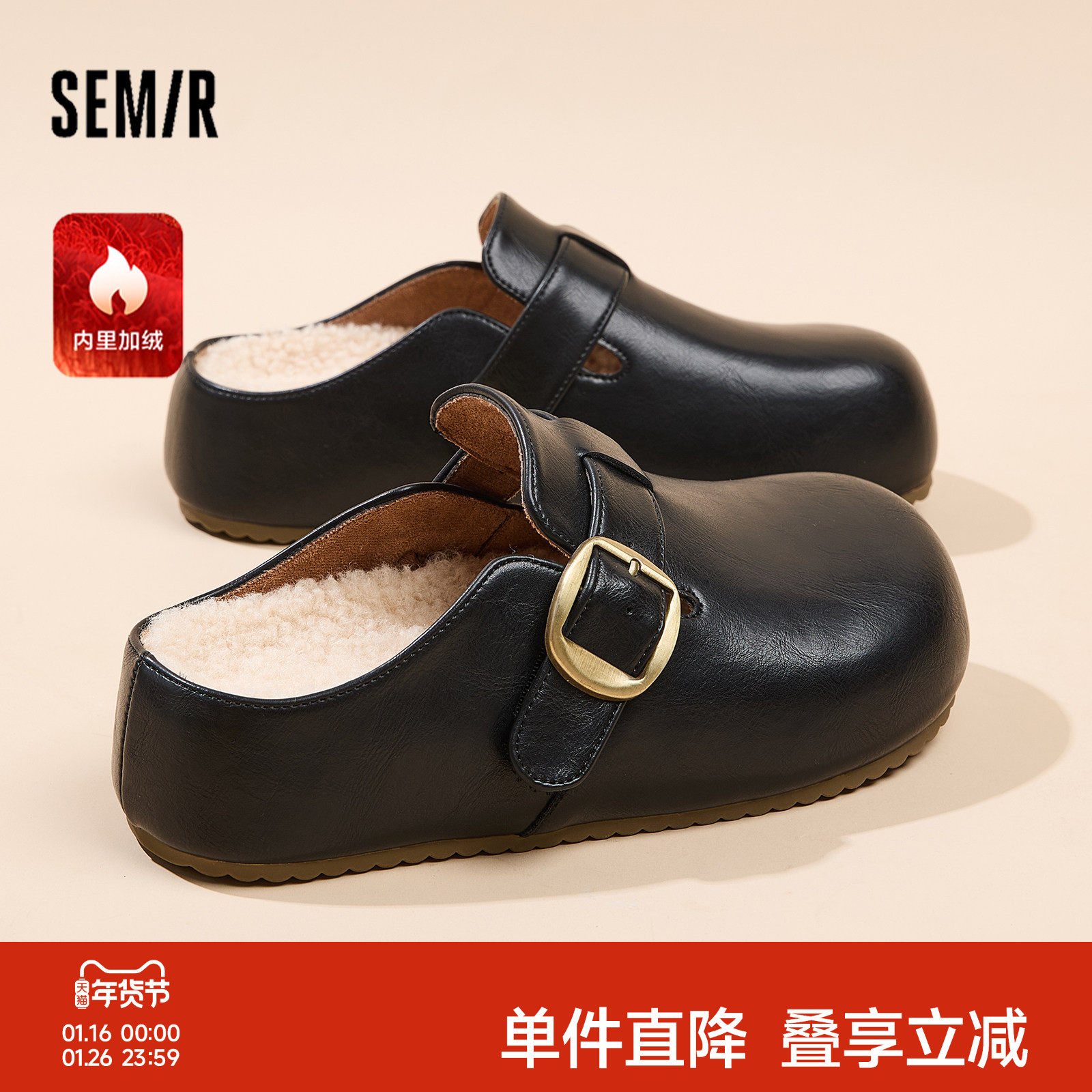 Semir女鞋加绒勃肯鞋女2025新款秋冬一脚蹬保暖女棉拖鞋毛毛博肯