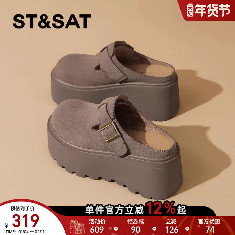 星期六厚底勃肯鞋女年新款春季复古增高一脚蹬圆头休闲半拖鞋