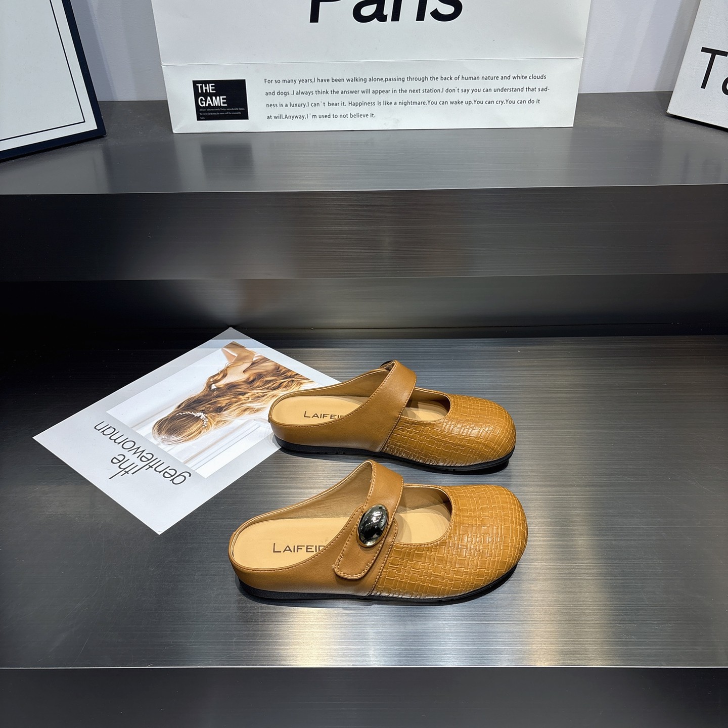 星期六包头勃肯鞋女春新款杏色百搭时尚平底单鞋一脚蹬半拖鞋