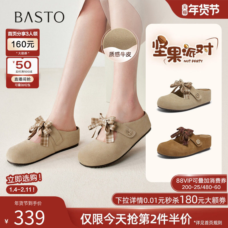 百思图26夏新款勃肯鞋凉拖休闲蝴蝶结包头外穿女半拖鞋BS137BH6