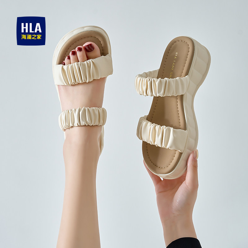 HLA/海澜之家厚底凉鞋女2025秋冬款褶皱一字带运动沙滩拖鞋踩屎感