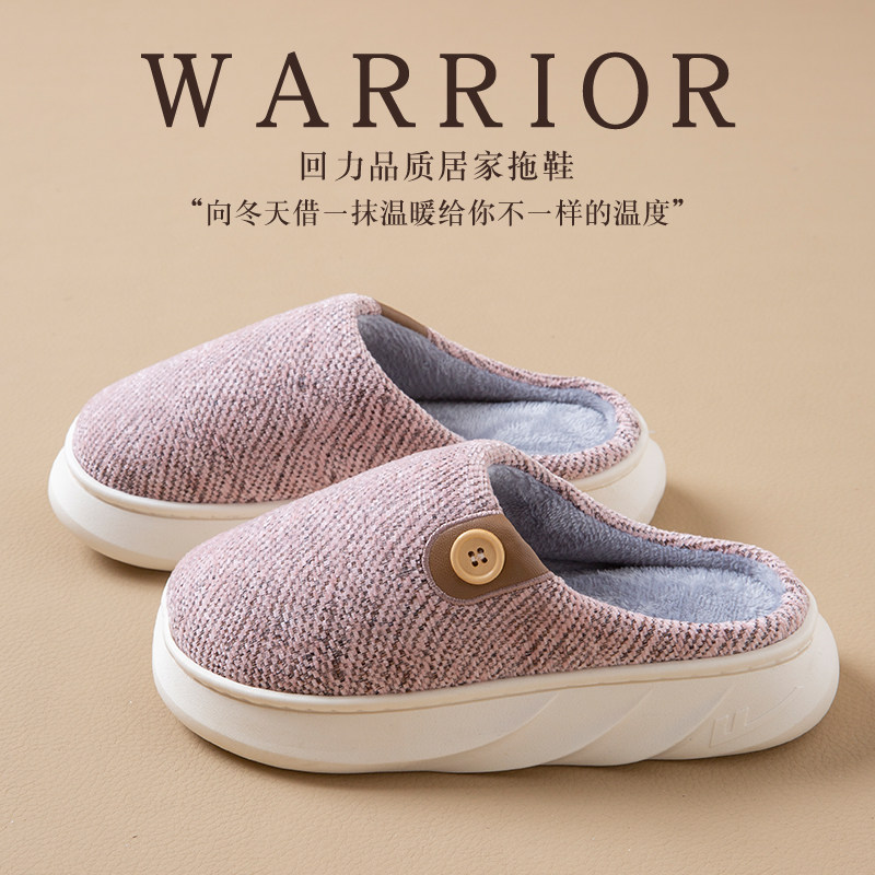回力棉拖鞋女秋冬新款居家室内厚底保暖舒适简约防滑月子棉拖男