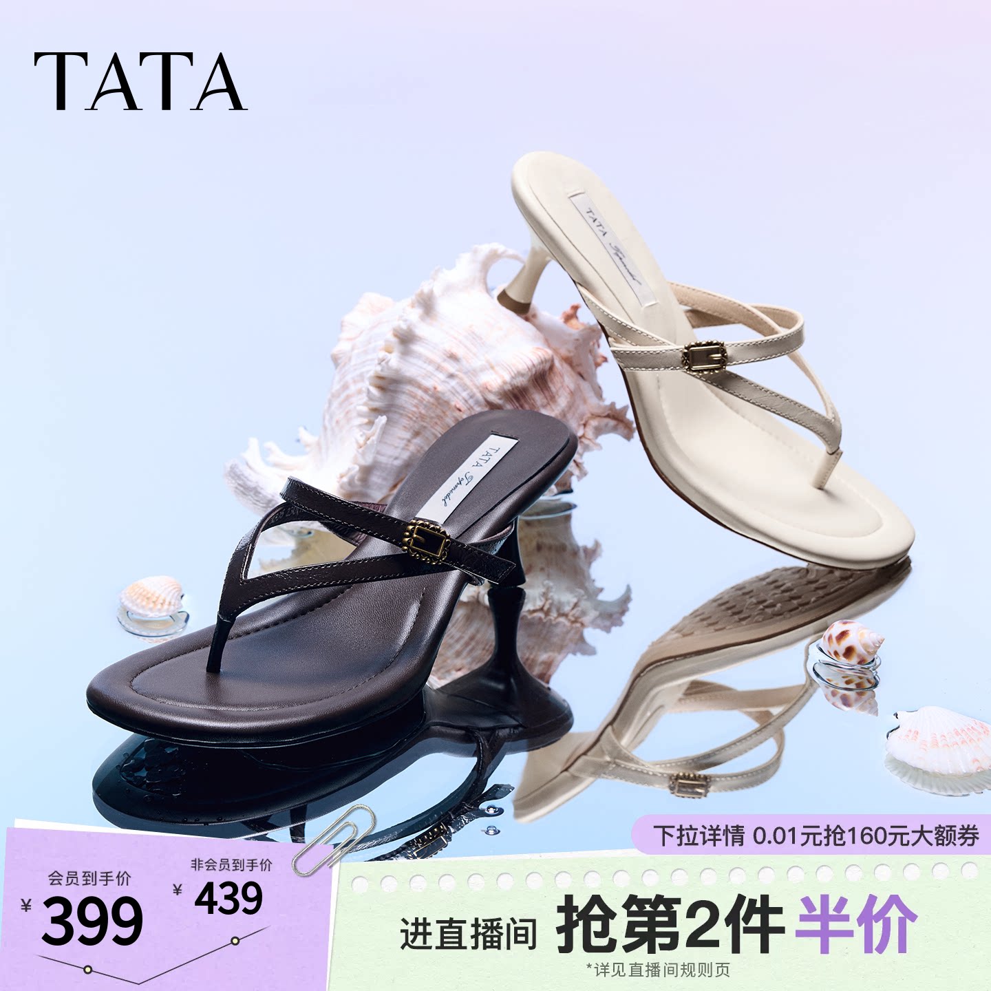 TATA他她超模高跟鞋女鞋夏细跟鞋简约百搭女夹脚人字拖鞋7K505BT6