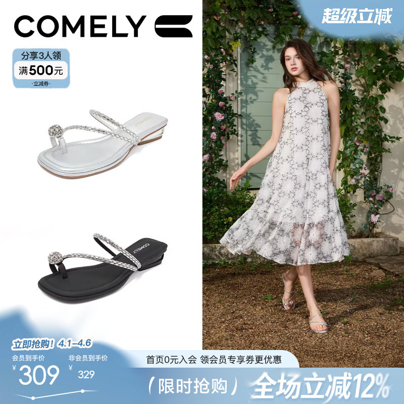 康莉拖鞋女夏外穿夏季新款粗跟法式气质水钻绝美凉拖夹脚拖鞋