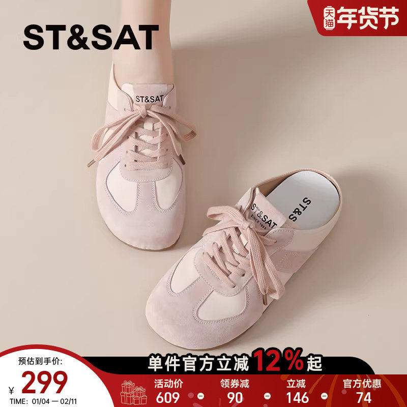 星期六真皮女士勃肯半拖鞋2025新款复古休闲厚底包头半拖鞋女外穿