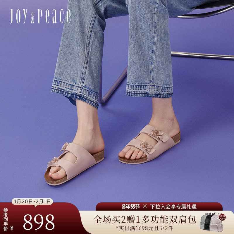 董洁同款真美诗怦然心动夏季羊皮鸢尾花勃肯鞋软木拖鞋外穿女