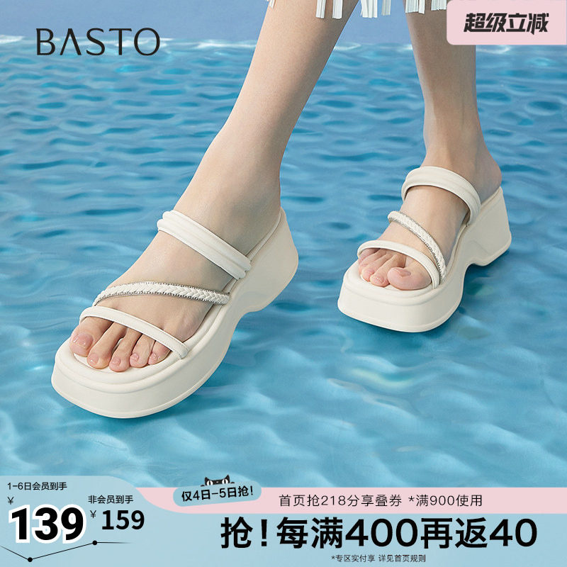 百思图夏季新款时尚简约休闲百搭拖厚底增高女拖鞋BV122BT5