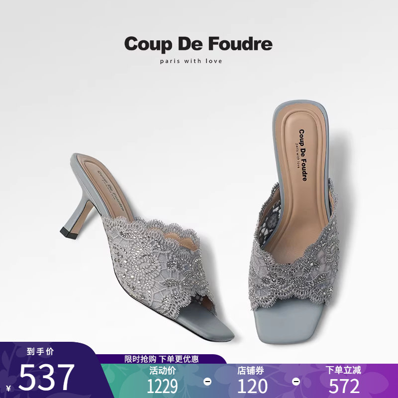 CDF女鞋2025夏季新款气质名媛风时高跟鞋水钻蕾丝露趾外穿凉拖鞋