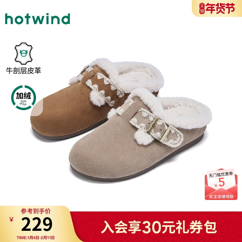 热风加绒勃肯鞋女2025年冬季新款复古软木拖百搭包头拖休闲半拖鞋
