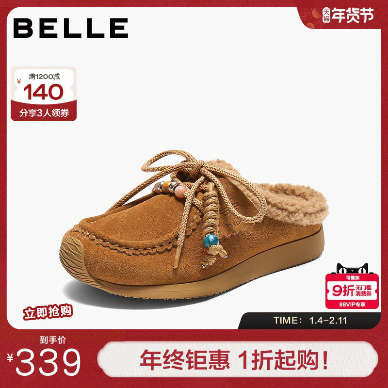 百丽复古串珠挂饰勃肯鞋女冬季新款内增高保暖包头拖鞋B2890DH5
