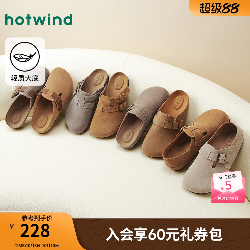 热风德训鞋半拖2025年秋季新款一脚蹬休闲鞋百搭包头拖鞋女鞋子