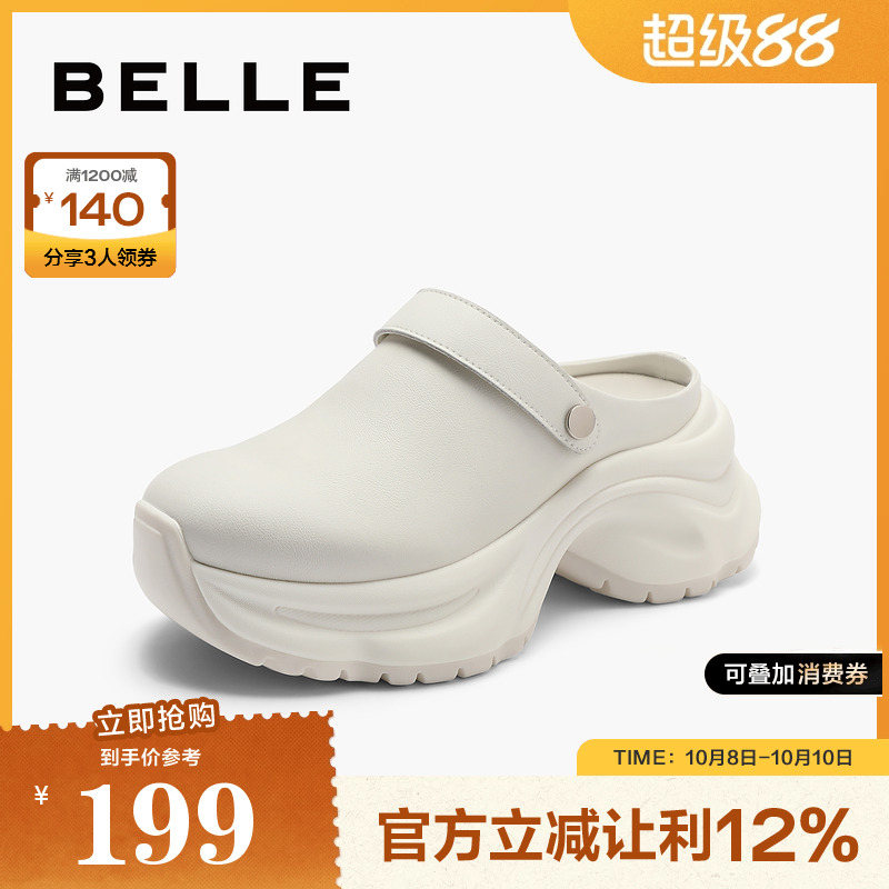 百丽女鞋子厚底洞洞鞋女新款可外穿增高包头外穿半拖鞋B1897BH4