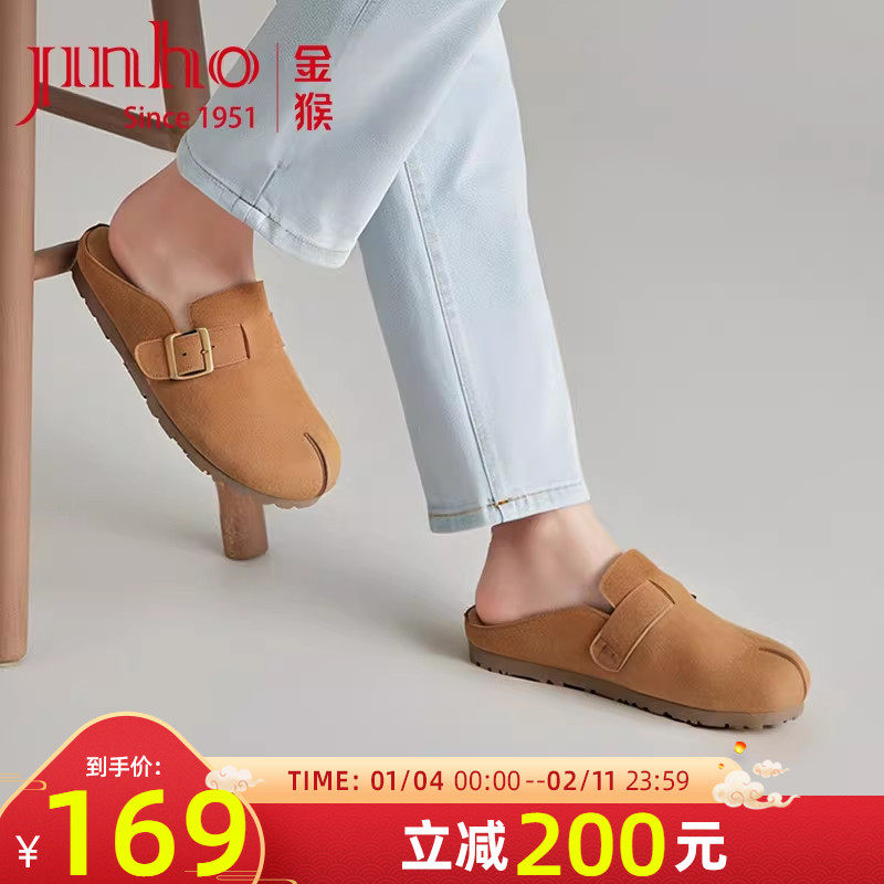 金猴勃肯鞋女2025秋季新款牛皮复古休闲时尚包头拖鞋百搭分趾鞋