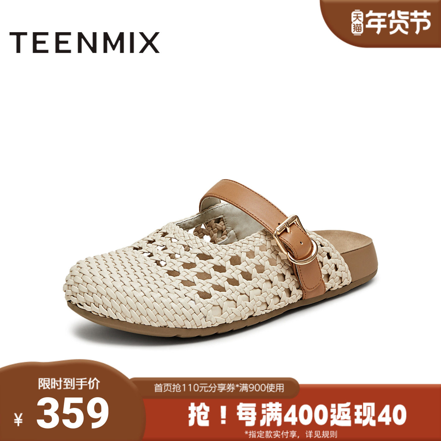 天美意2025夏新款商场同款包头拖鞋镂空复古女勃肯鞋CHS39BH5