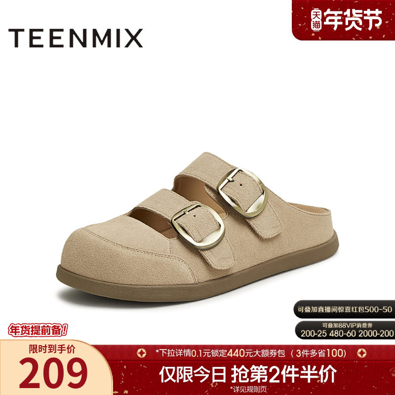 天美意2025夏新款厚底复古百搭拖鞋半拖通勤女勃肯鞋KK042BT5