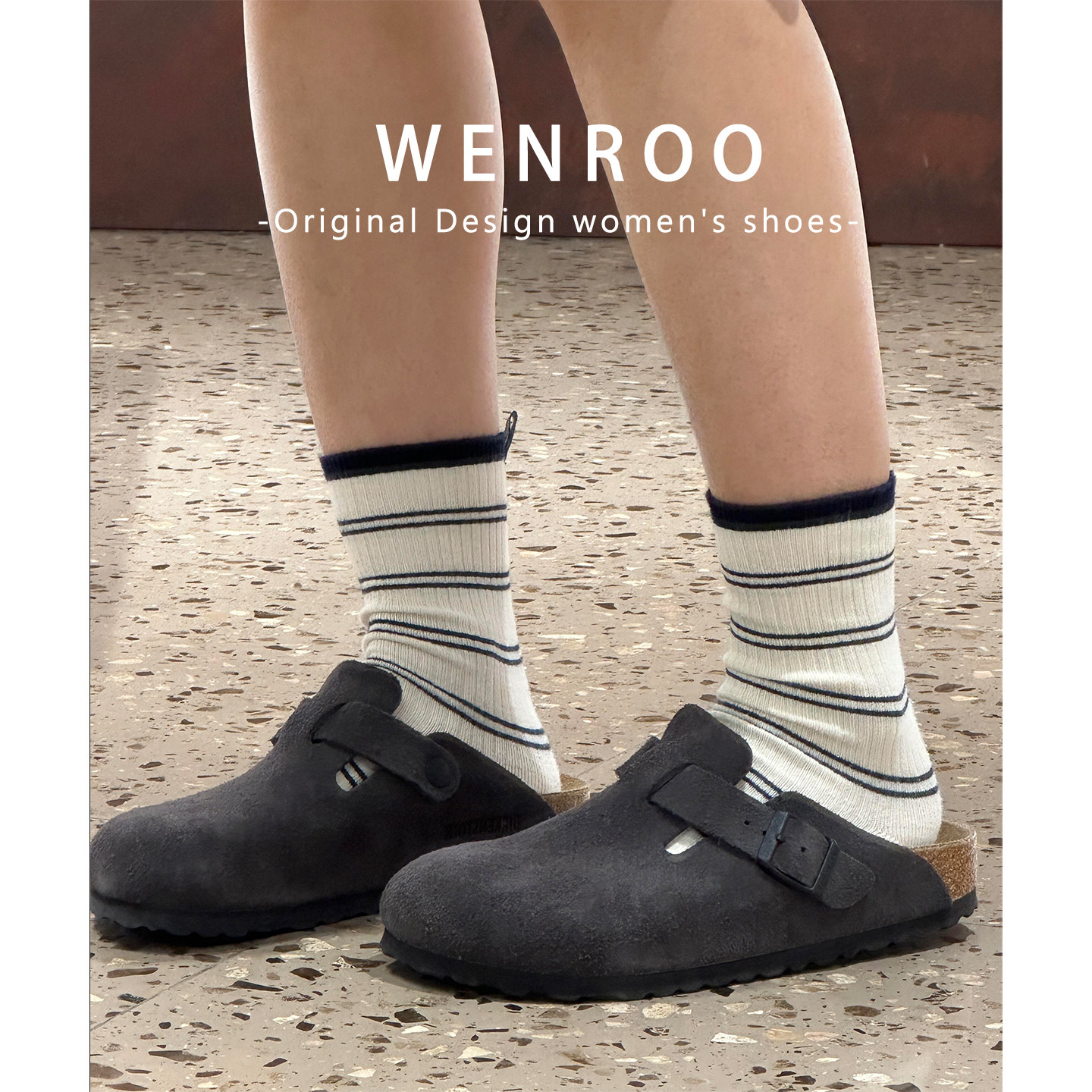 AUMU软木底勃肯鞋女时尚一脚蹬舒适软底单鞋休闲外穿凉拖鞋沙滩鞋
