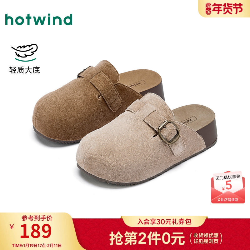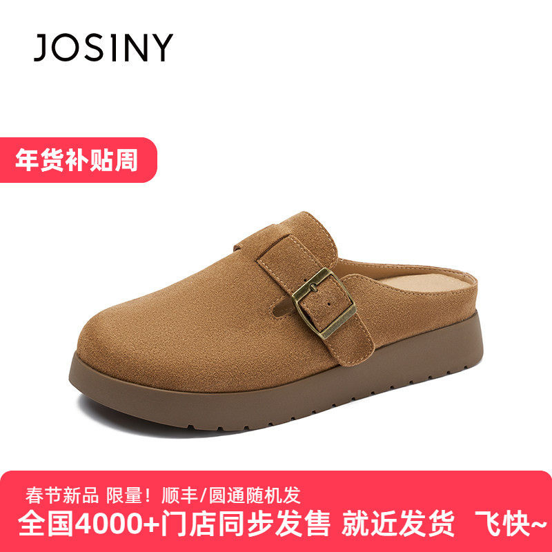 卓诗尼2025年秋冬季新款复古厚底百搭包头半拖鞋女时尚软底舒适