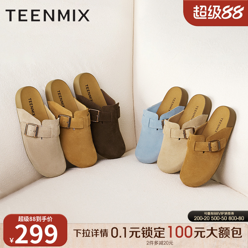 天美意复古厚底勃肯包头半拖鞋男女同款一脚蹬休闲凉拖夏季新款