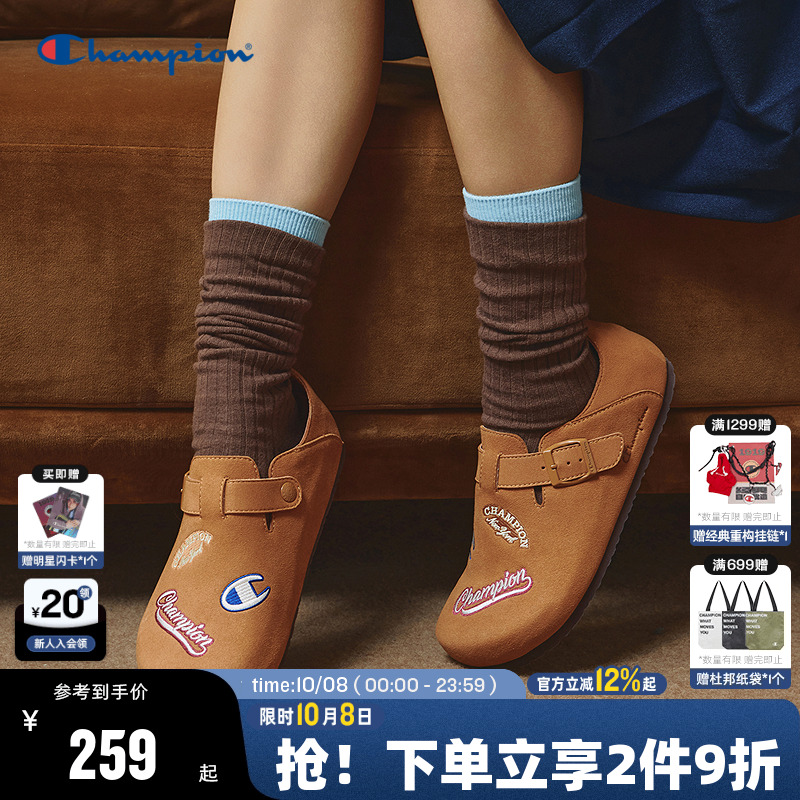 Champion冠军勃肯鞋女25秋冬新款百搭平底单鞋时尚休闲全包拖鞋男