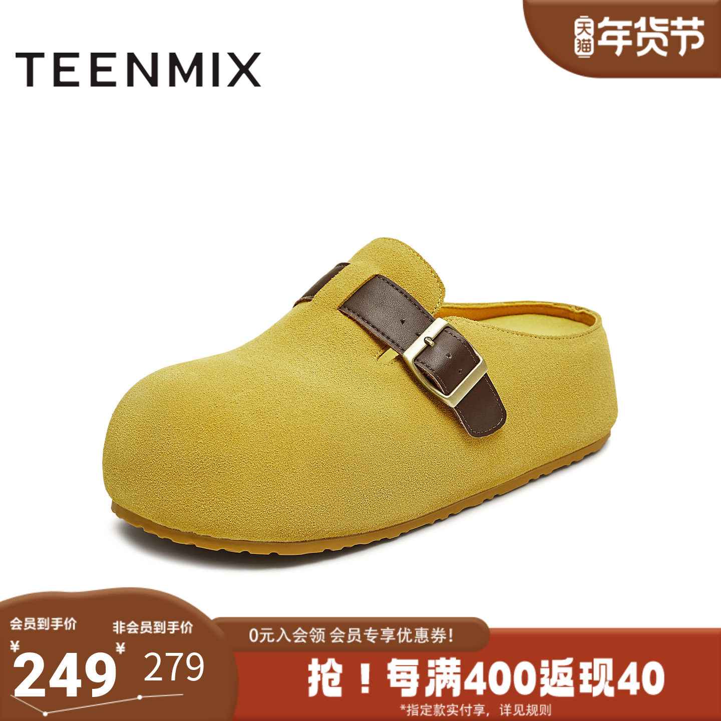 色非厚底牛反绒勃肯鞋女2025秋季新款休闲外穿懒人一脚蹬包头拖鞋
