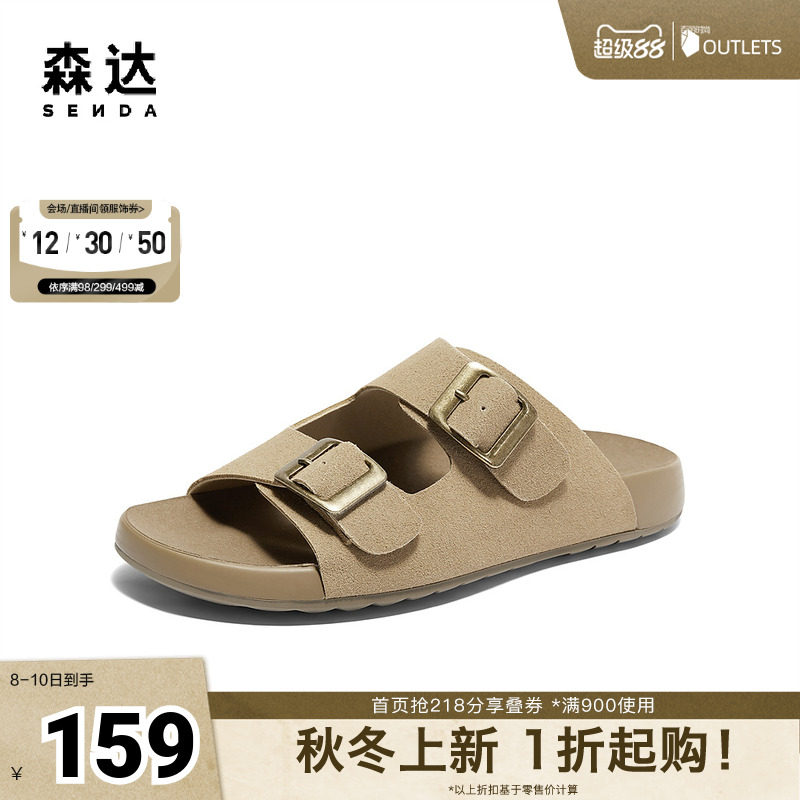 森达勃肯鞋女款2024外穿夏季舒适平底休闲凉拖鞋XCK01BT4