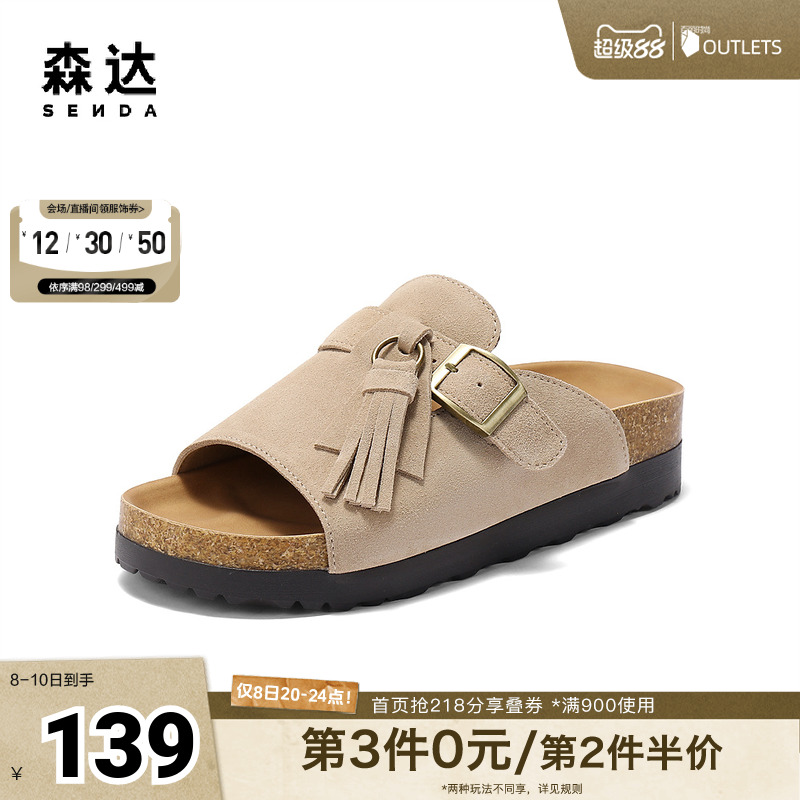 森达勃肯鞋女2025夏季新款流苏厚底外穿休闲凉拖鞋ZTG46BT5