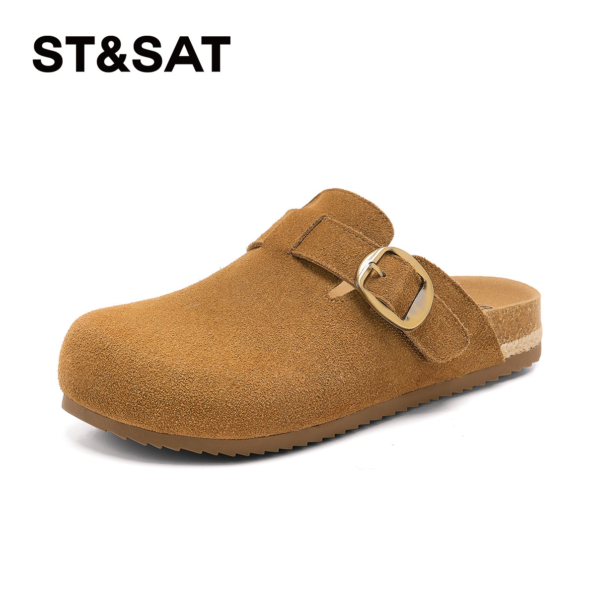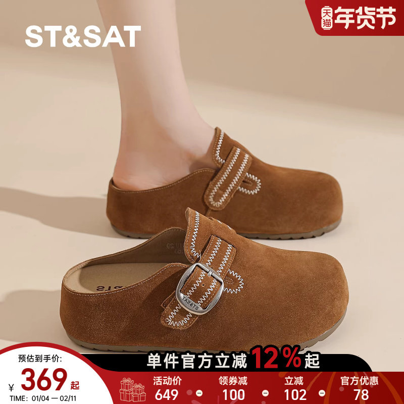 森达勃肯半拖鞋女款2025秋新舒适外穿包头复古厚底休闲鞋ZTH02CH5