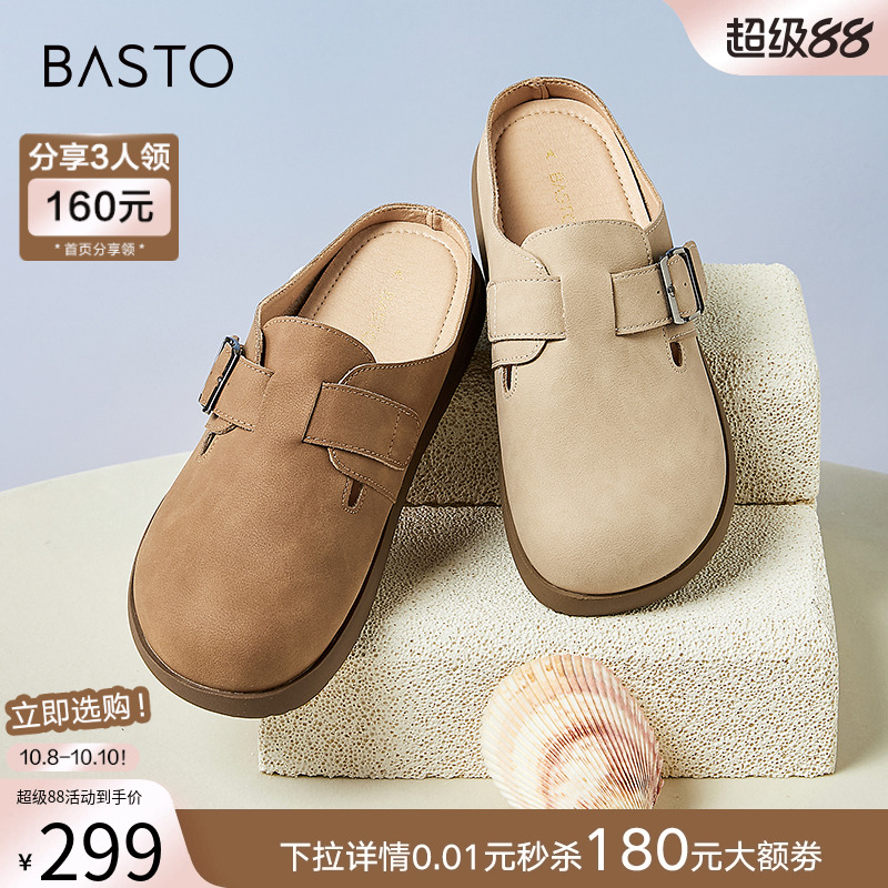 百思图夏季商场新款复古勃肯鞋外穿拖鞋女懒人一脚蹬单鞋BG188BM4