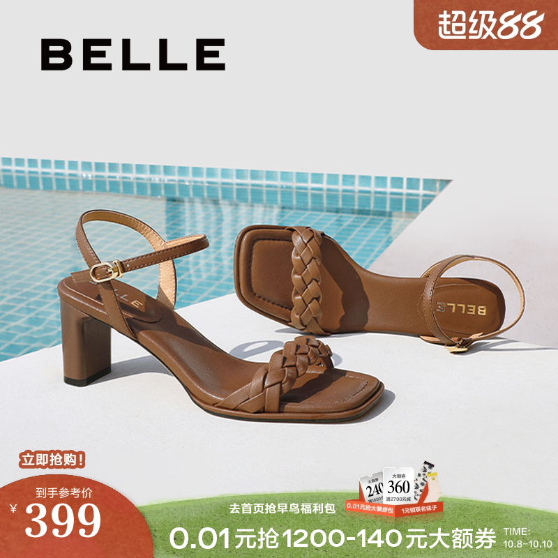 阿秋同款百丽粗高跟一字凉鞋女2025夏季新款海滩拖鞋子D6W1DBL5