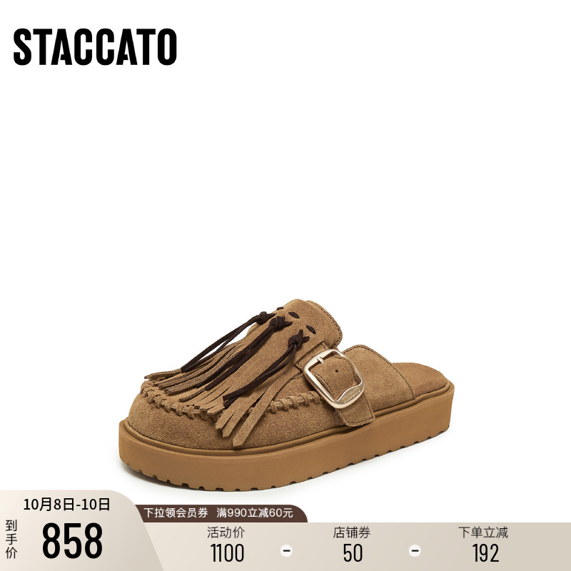 思加图2025新款复古一脚蹬勃肯鞋厚底增高包头拖凉拖鞋女S1301CH5