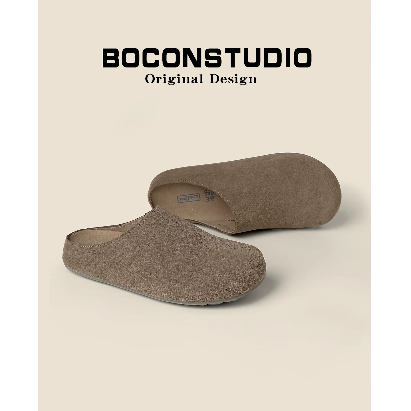 真皮两穿勃肯鞋女2026春秋季新款一脚蹬懒人半拖鞋平底牛皮博肯鞋
