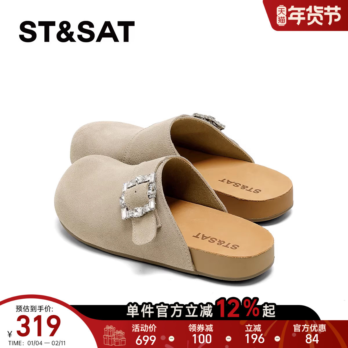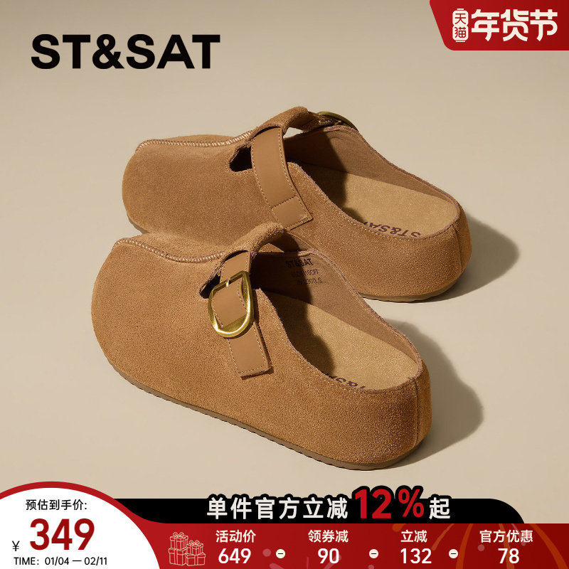 St&Sat/星期六冬季保暖勃肯鞋一脚蹬厚底包头半拖鞋女SSD4110CLS