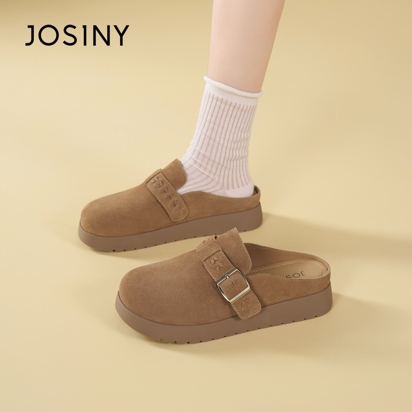 卓诗尼2026春季新款厚底勃肯鞋时尚舒适小皮鞋时尚舒适休闲半拖鞋