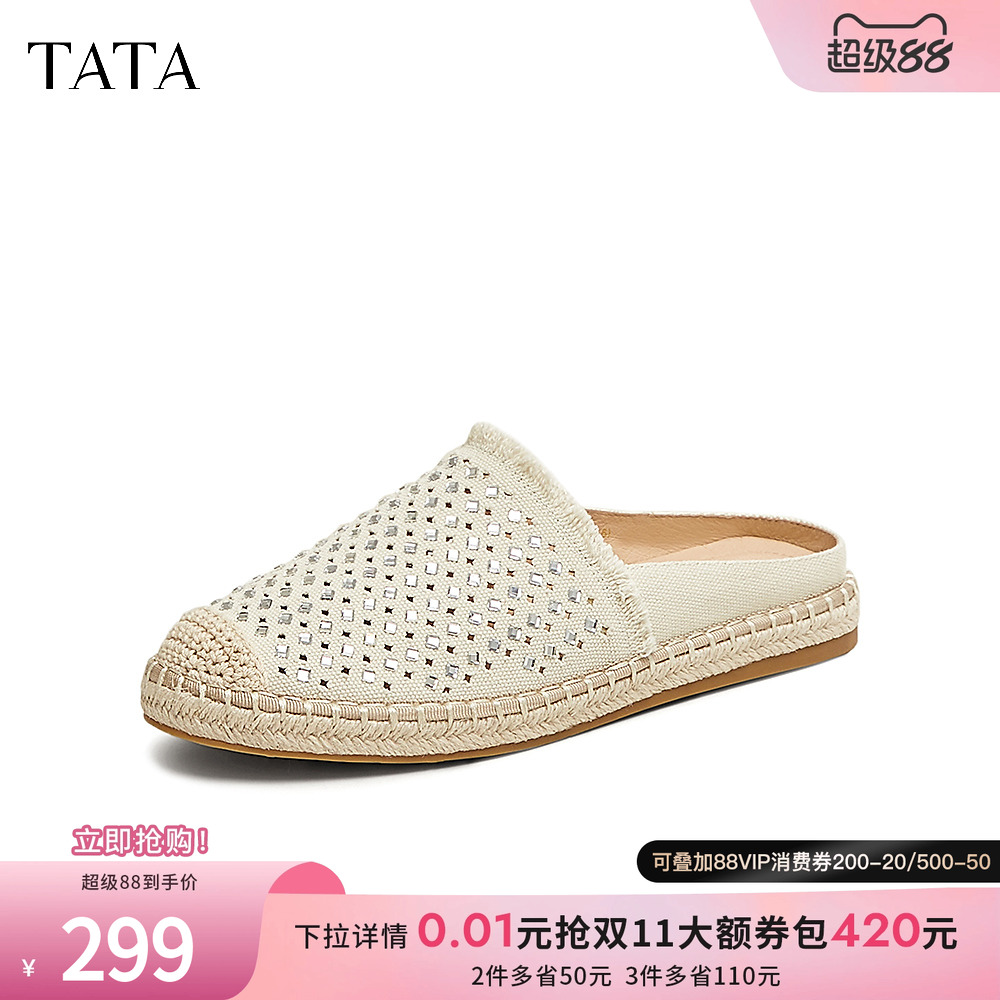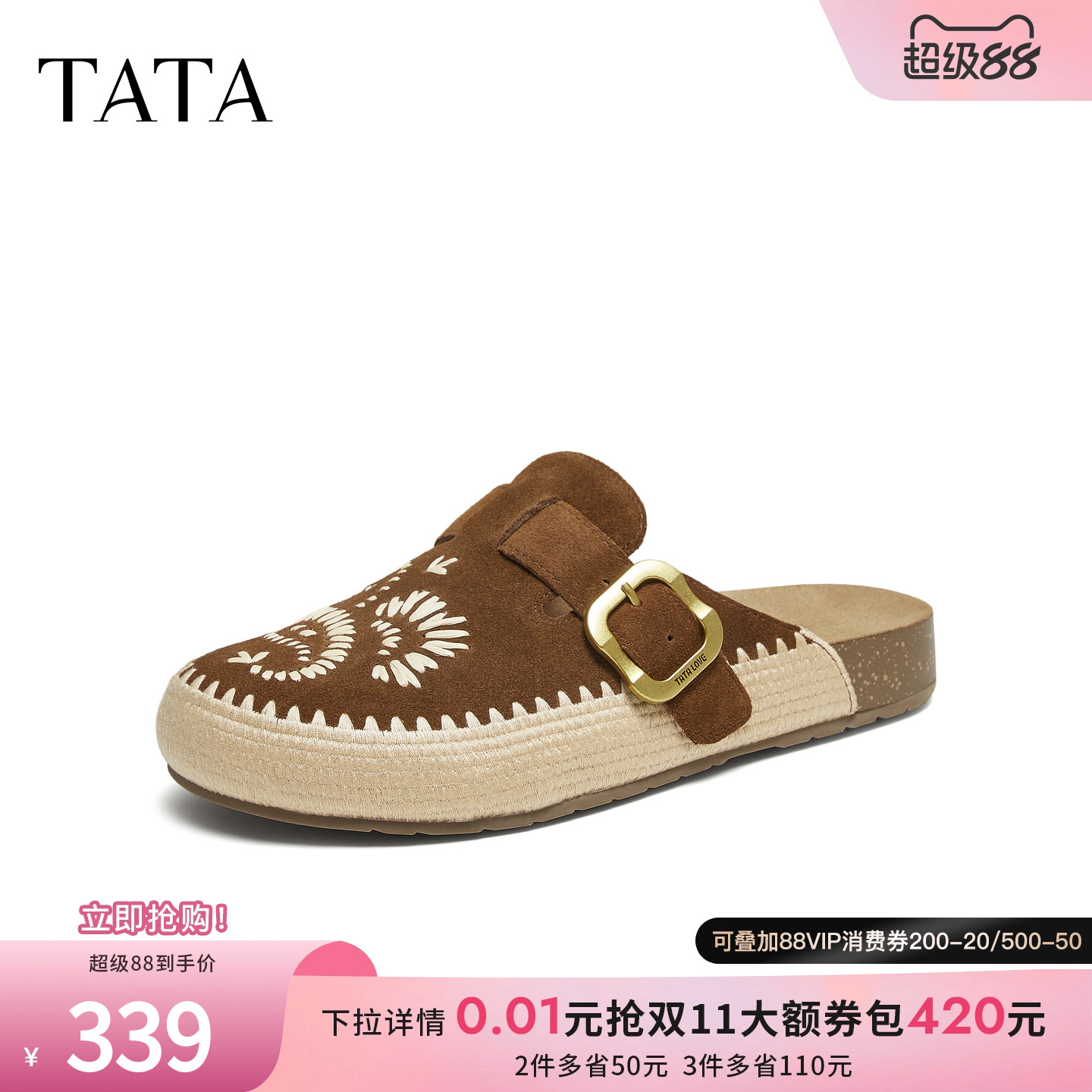 TATA他她小香风气质渔夫鞋女鞋平底外穿包头拖鞋2025春新CT602AH5