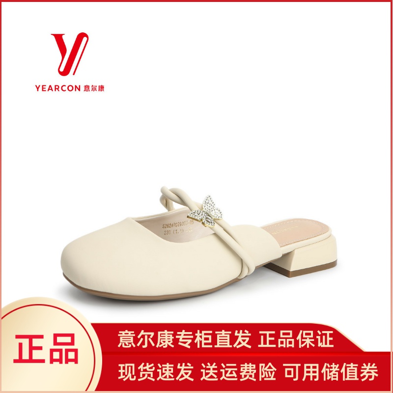 意尔康商场同款半托女鞋外穿2024新款包头拖鞋高级感蝴蝶结02930