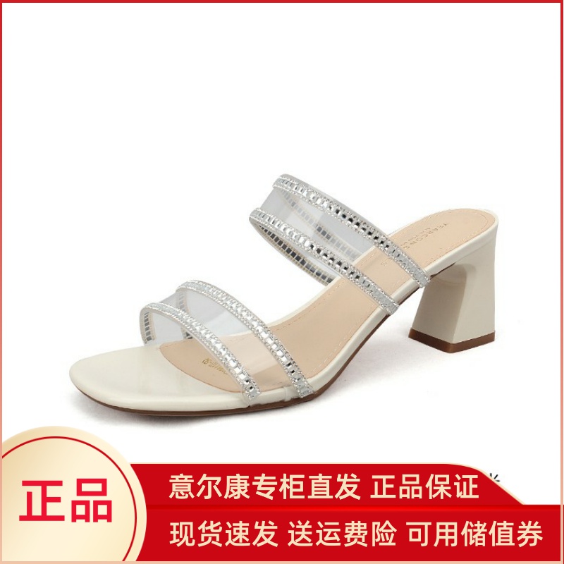 意尔康拖鞋女2024新款夏季外穿粗跟高跟时尚透明气质配裙子03611