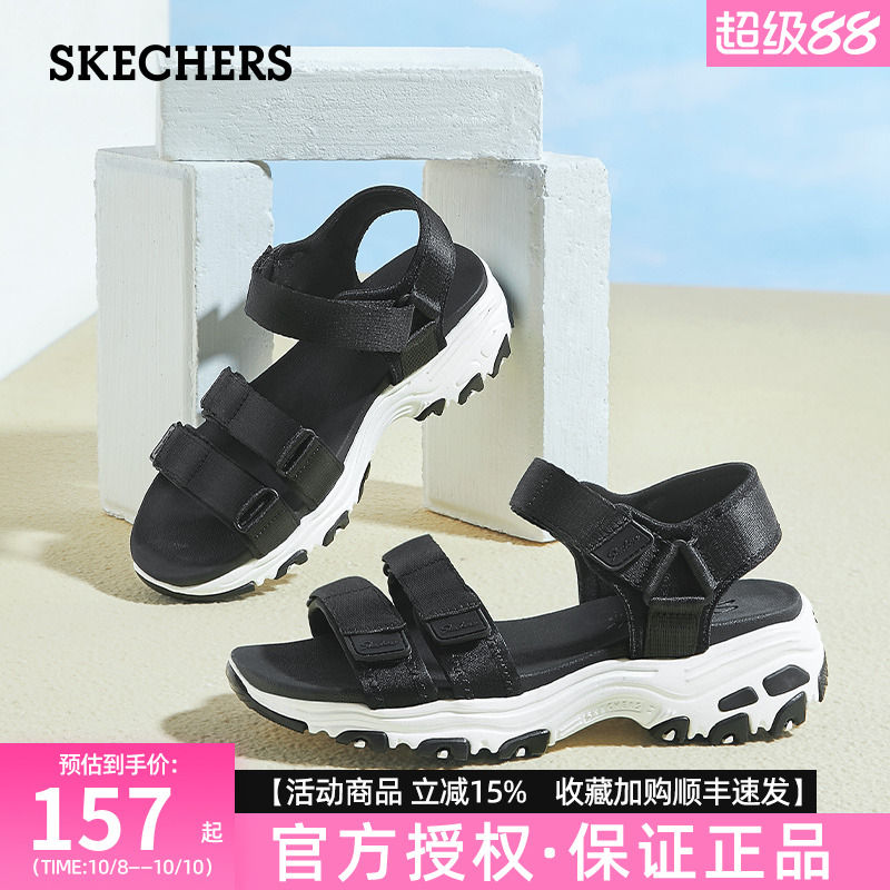 斯凯奇凉鞋男旗舰夏季新款魔术贴运动休闲厚底透气拖鞋沙滩鞋女潮