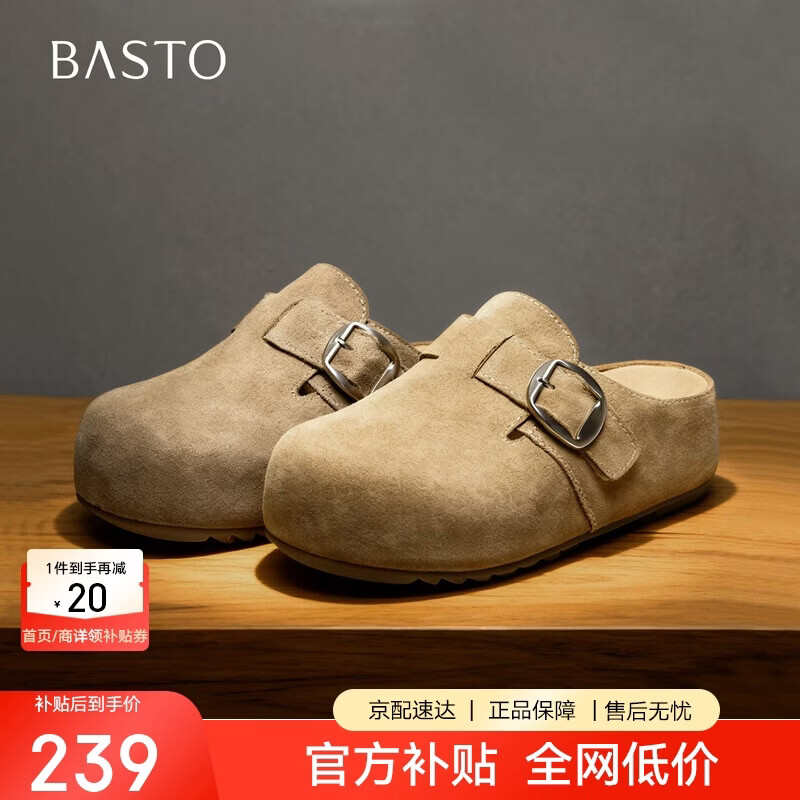 百思图26夏厚底休闲包头懒人勃肯鞋半拖外穿女拖鞋W1059BH6 杏色 37