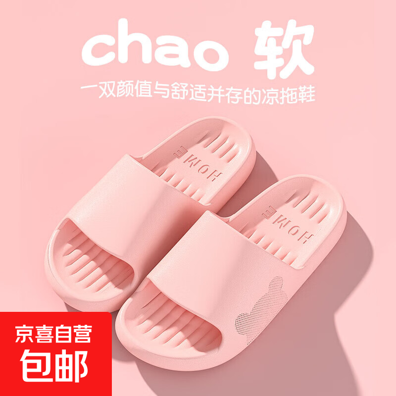 【亲子】厚底拖鞋女款踩屎感夏外穿家居防滑防臭室内新款家用情侣 S*3/拼接款】粉色 23【36到45码】