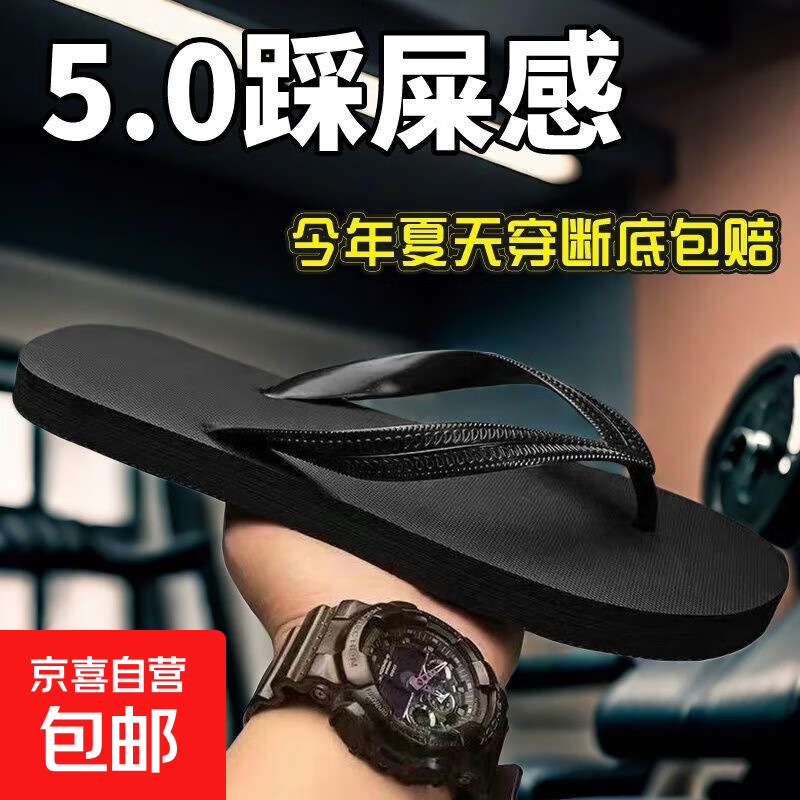 夏季潮流人字拖防滑外穿休闲男士沙滩耐磨泰国拖鞋大款象韩版防臭 黑色 40-41